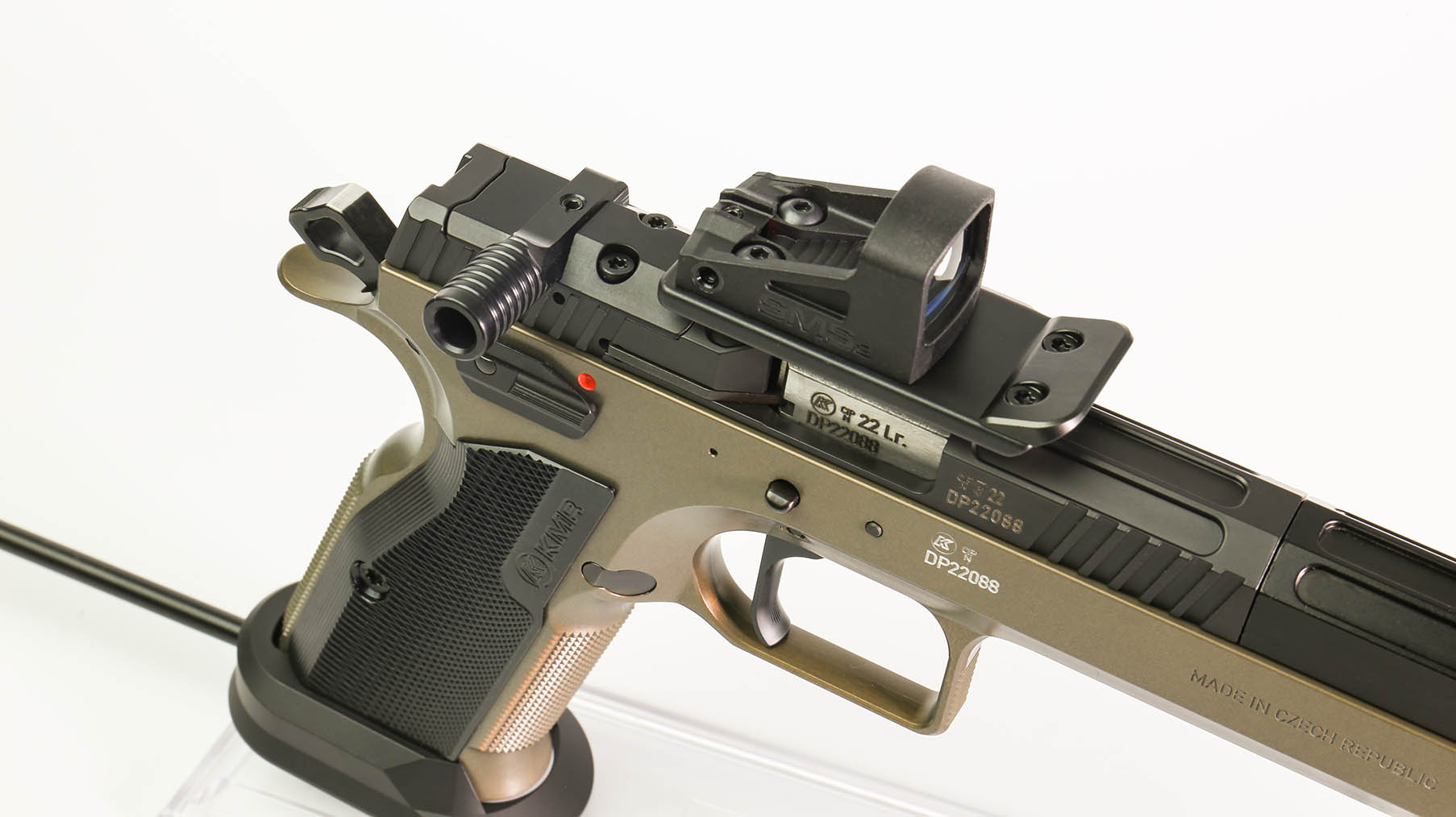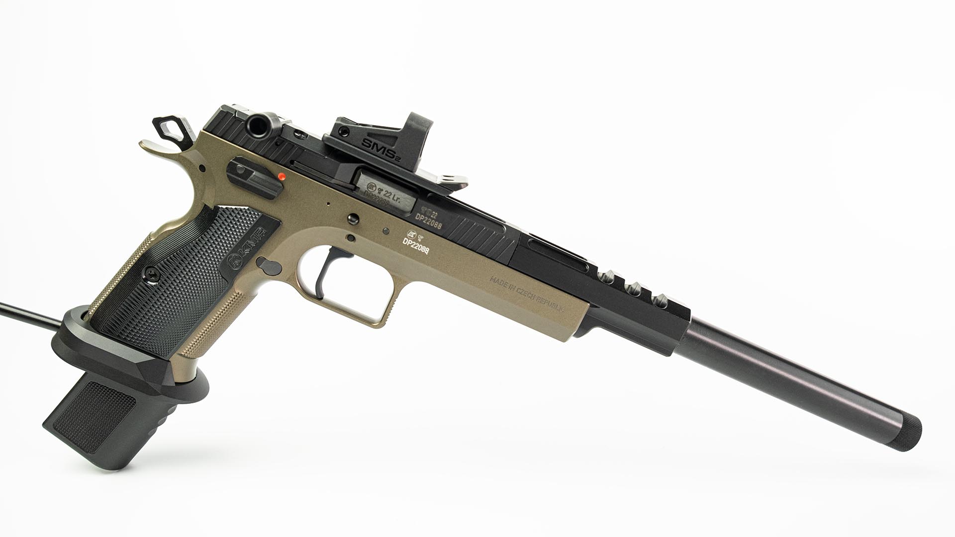 The KMR S-01 – Open Edition is a state of the art Long Barrel Pistol designed with speed and accuracy in mind. Based primarily on the most widely used production platform, the S-01 offers the high quality that all users have come to expect from a Czech made handgun with all the additional components to make this a fantastic UK legal open competition pistol.