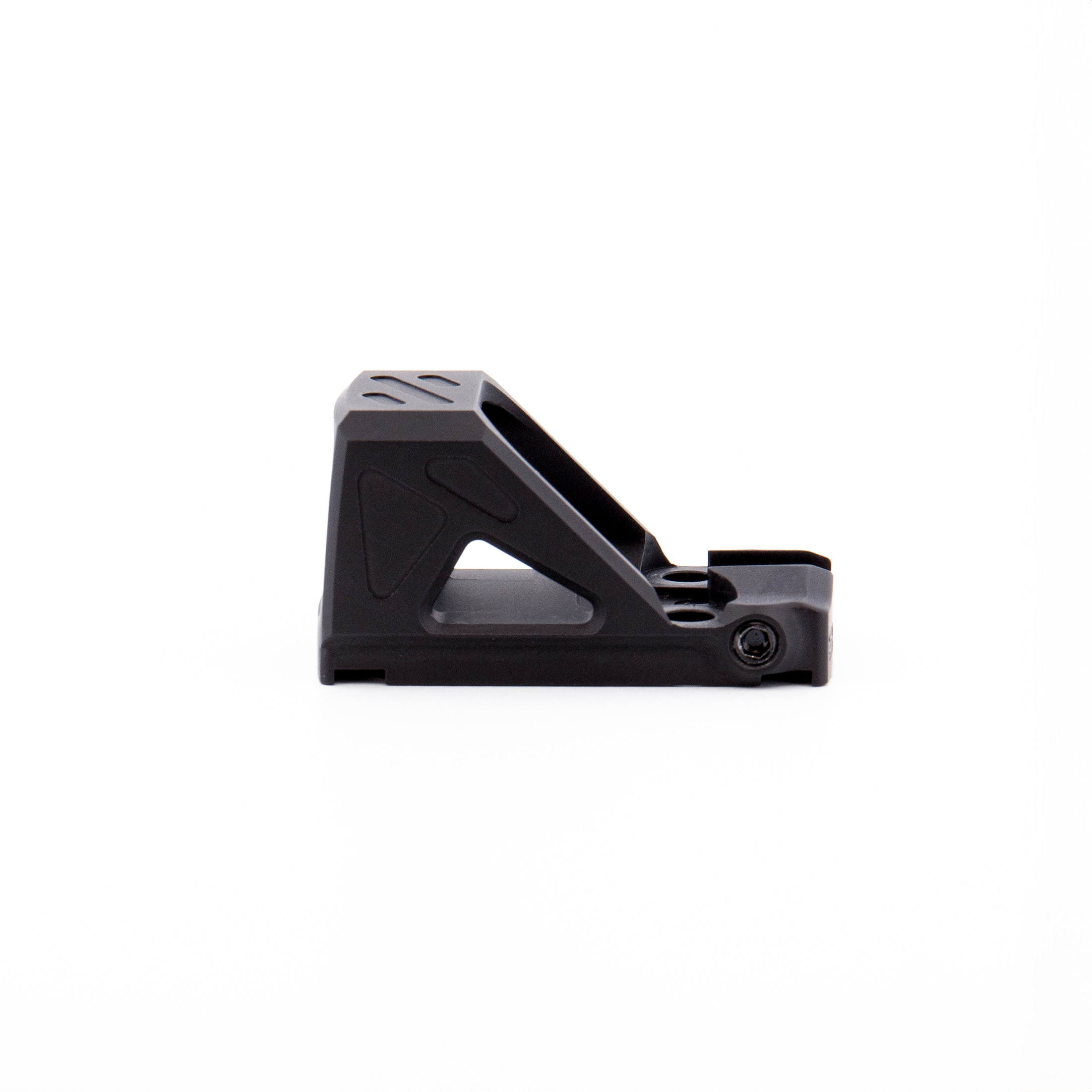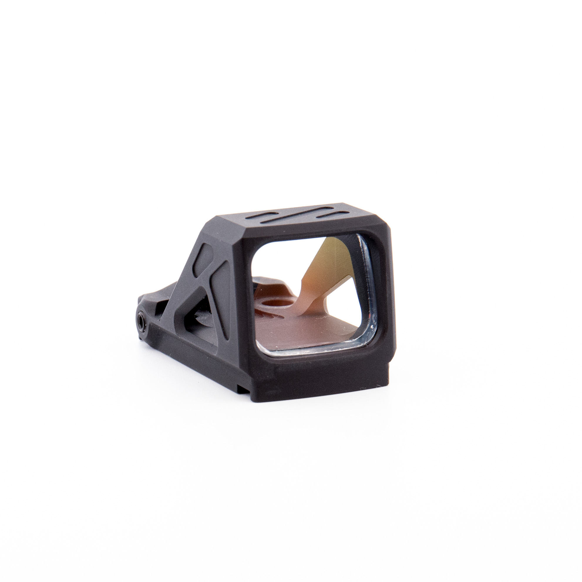 - Low height over bore axis – allowing co-witness capability with standard height iron sights when installed on a direct slide mount or using our low profile mounting kit