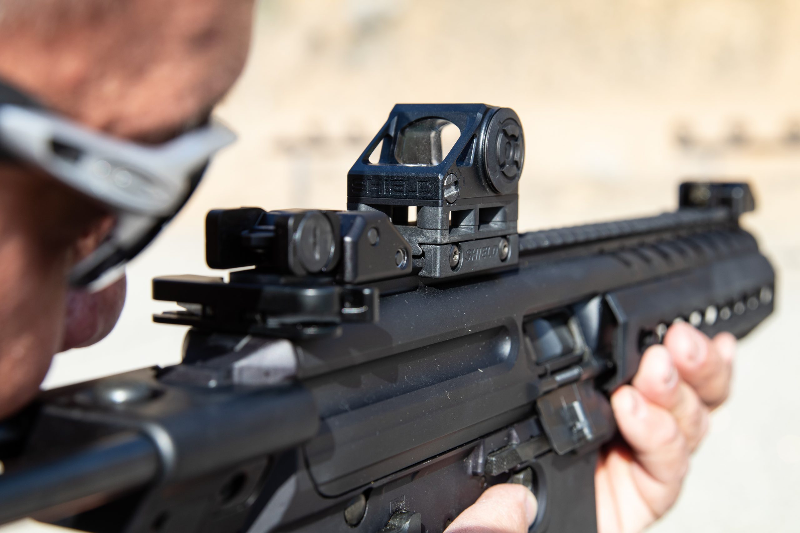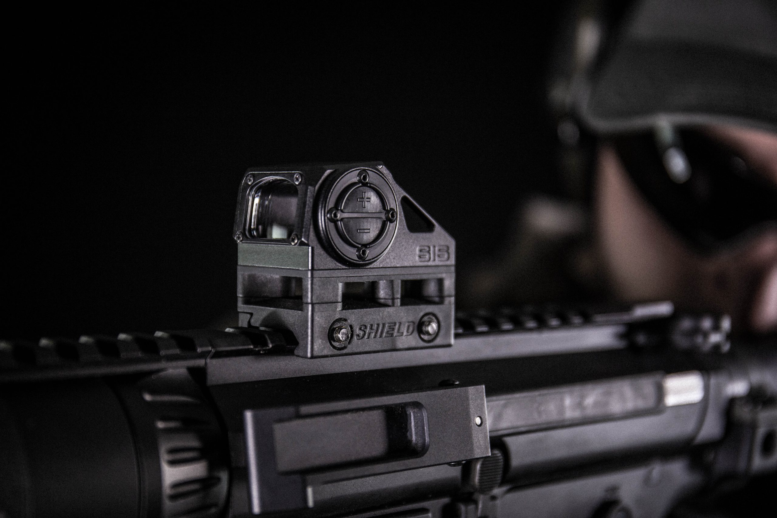 The Advanced Mini Sight is the first enclosed emitter optic from SHIELD that retains our famous SHIELD footprint, offering co-witness capability with standard height iron sights. Its origins are born from two of our existing products, both tested in the military and carrying NSN numbers after meeting DEFSTAN International requirements: SIS (NSN-1240-99-176-8362) and RMSw (NSN-1240-99-490-5863).